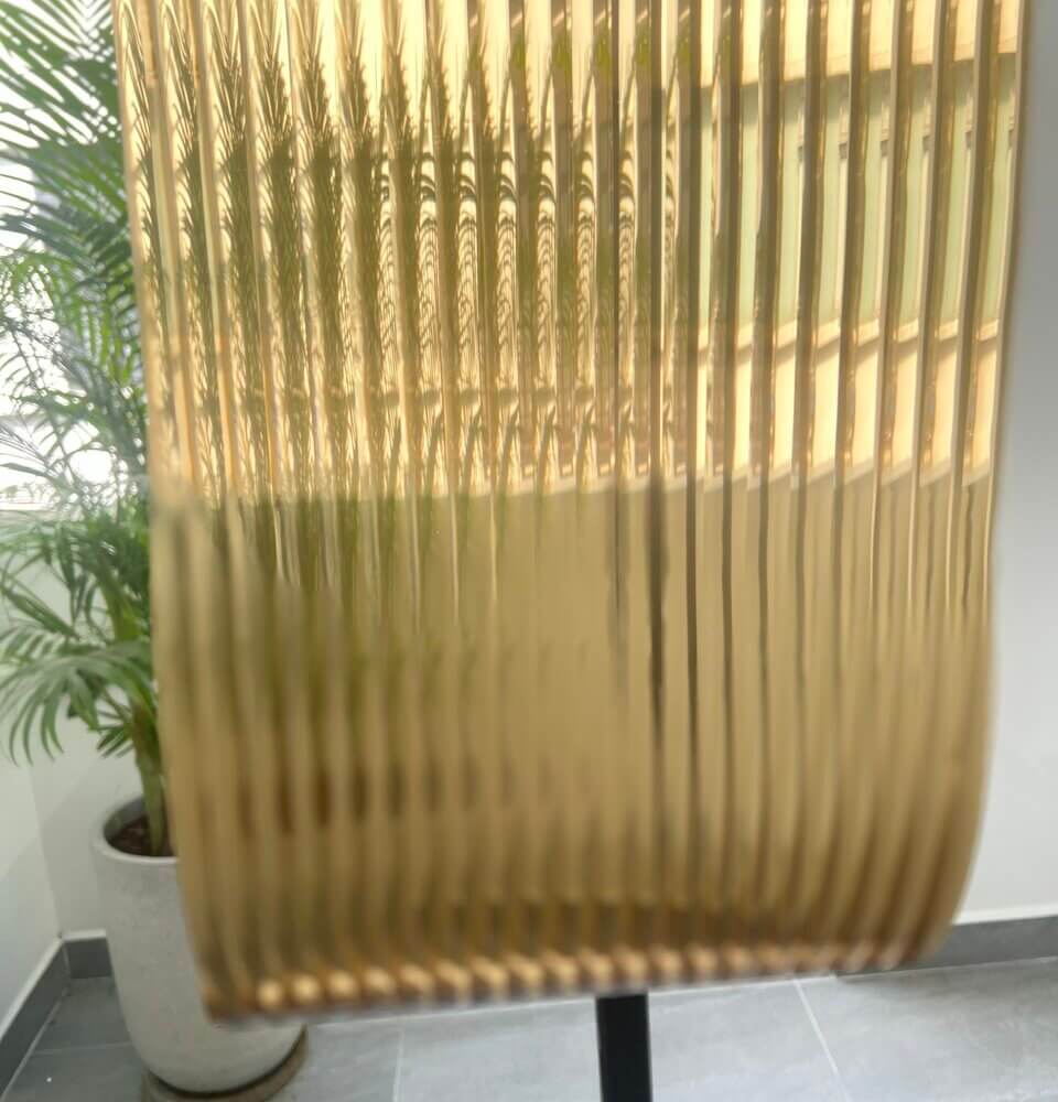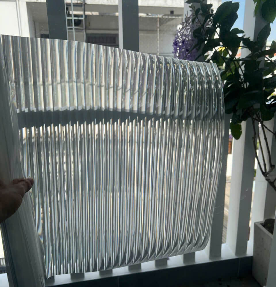 Kiểu decal này có bề mặt được thiết kế dạng sóng đứng liên tục (giống như các rãnh nhỏ chạy dọc), tạo nên hiệu ứng thấu kính khi ánh sáng xuyên qua. Các đường gân này làm cho hình ảnh phía sau bị “bẻ cong”, tạo hiệu ứng làm mờ độc đáo mà vẫn cho ánh sáng đi qua.