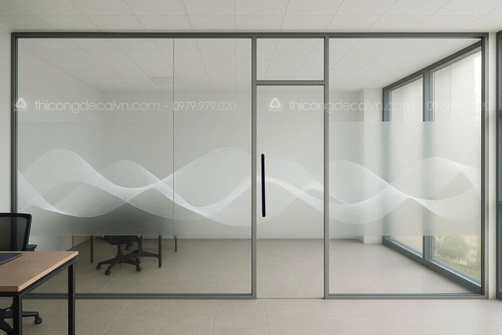 Decal Mờ In UV Lượn Sóng Dán Kính – Giải Pháp Trang Trí & Bảo Mật Sang Trọng Cho Không Gian Hiện Đại